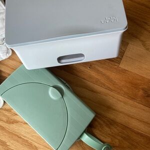 2 Ubbi wipes containers, Ubbi weighted for changing table and Ubbi with strap for to-go