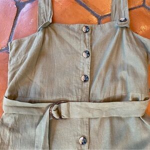 Topshop Green Button Front Linen Blend Belted Jumpsuit Romper U.S. Size 14