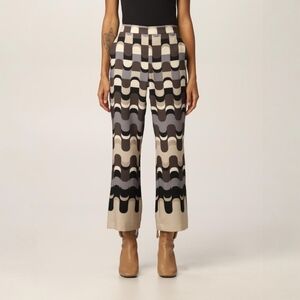 Maliparmi Italian Cropped/Flared Neo Modern Printed Pants in Neutral Tones, US 8
