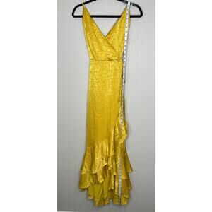 Lulus NWOT In Love Forever Mustard Yellow Satin Lace-Up High-Low Maxi Dress L