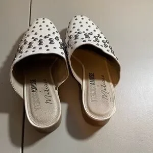 Amuse Society X Mattise Womens 9.5 Off White Heeled Mule Silver Studs Slip on Sicily