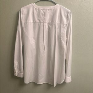 Talbots White Tunic Top Blouse Long Sleeve Jeweled Buttons Size Medium