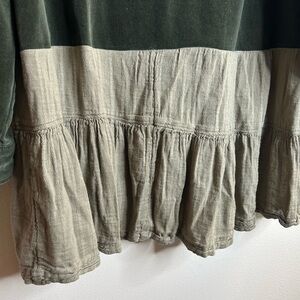 Dark green velvet cross shirt with ruffle trim upcycled womens size XL, 1 front pocket, snap button up closure