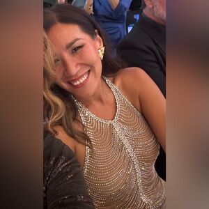 I have the tag but it’s not attached. I wore this one time to a charity event for 3 hours. It’s absolutely stunning and I received a zillion compliments! The crystals on this dress are amazing and beats out any sequin dress by far.