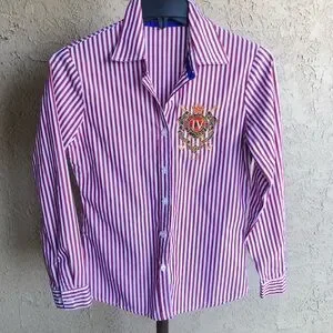 Ralph Lauren Blue Label Preppy Button Down Top with Large Crest Logo