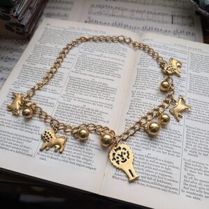 Elegant gold necklace with animal charms. Perfect for adding a playful touch to any outfit.