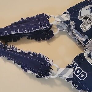 new homemade unique rag cowboys purse handmade with no pockets but can hold quite a bit of stuff. inside is grey with outside grey, white, blue and official cowboys material.