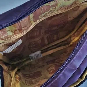Purple Nylon Bag with brown faux animal print and gold tone chain details.