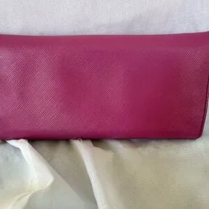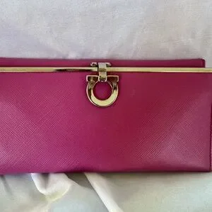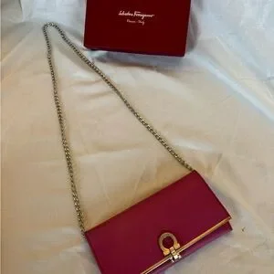 Chic fuchsia wallet by Salvatore Ferragamo. Features elegant silver-tone hardware. I added a chain so you can wear it as a crossbody
