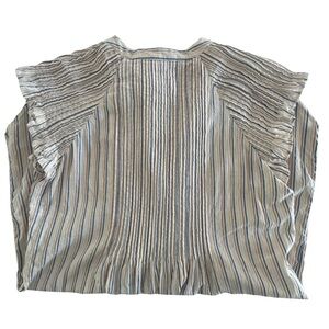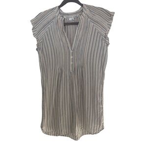 Veronica Beard Marieta Striped Lurex Pintuck Flutter-Sleeve Tunic Dress Small