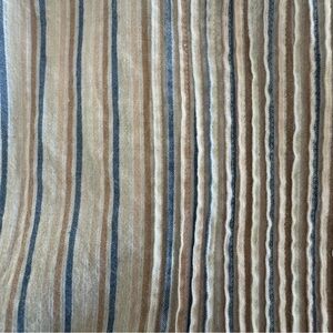 • Pattern/Color: Blue/Tan/Cream stripe with subtle metallic thread