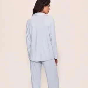 The PJ that started it all. Made from TENCEL™ Modal fibers and a touch of elastane, this buttery soft fabric is verified by OEKO-TEX® Standard 100, meaning it’s dyed with safe and non-toxic dyes. This relaxed long sleeve set features contrast piping, a button-front top with a notch collar and functional pocket, and a low-rise straight leg pant with a thin elastic waistband.