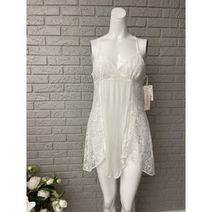 Linea Donatella Women White Flower Sheer Lace Lingerie Nightgown Size S NWT