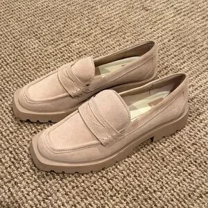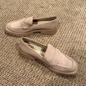 Elias suede loafer. Cream color. No signs of wear in great condition!! Worn once so bottoms are slightly dirty