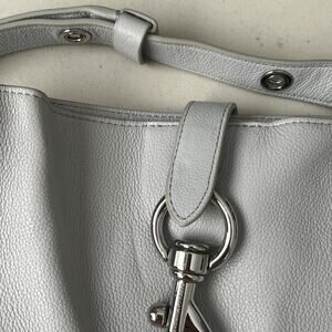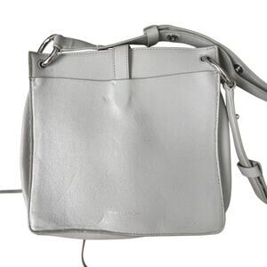 Rebecca Minkoff Megan Feed Bag Genuine Leather Shoulder Crossbody MSRP $325 Gray