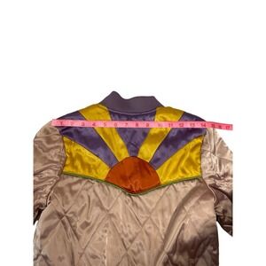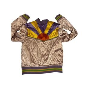 Classic Rock Couture Satin Bomber Jacket Size Small Gold Purple Yellow Retro 70s