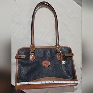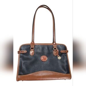Chic shoulder bag with black and tan leather. Features elegant design and sturdy straps. Perfect for daily use.
