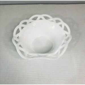 imperial glass ohio laced edge milk glass shallow round bowl 7.5 inch