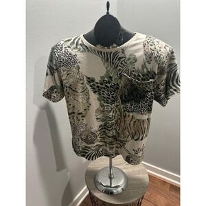 Vintage Judy Knapp Tiger Leopard T-Shirt Pocket wiith Shoulder Pads