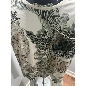 Vintage Judy Knapp Tiger Leopard T-Shirt Pocket wiith Shoulder Pads no size tag but measures 22" pit to pit 24" shoulder to bottom Preowned smoke home