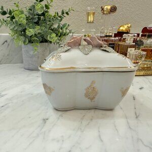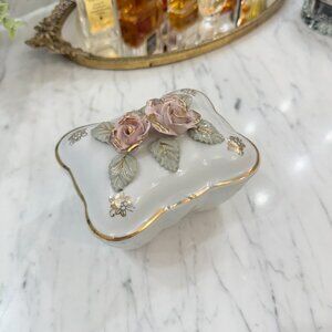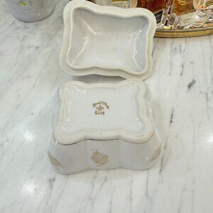 Vintage Lipper Mann (L&M) Bond Ware Trinket Box, Porcelain with Roses &Gold