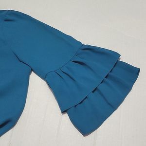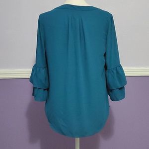 Roz & Ali Boho Chic Teal Tiered Bell Sleeves Modest Chic Flowy Top