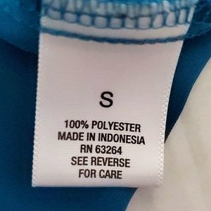 Teal flory top with double tier bell sleeves. Split neck. Pleats on front and back. Rounded bottom hem. Silky material made of 100% polyester.