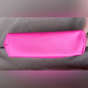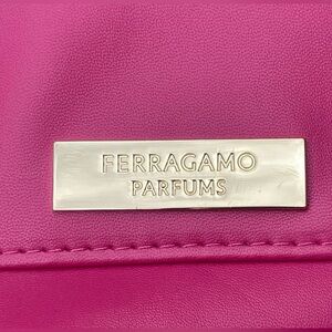 Chic and compact pouch from Salvatore Ferragamo, in a vibrant pink color with a soft satin finish and gold-tone logo detail.
