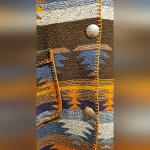 Rhonda Stark Southwestern Aztec Wool Full Length Cardigan Jacket Coat Ovrsized S