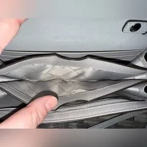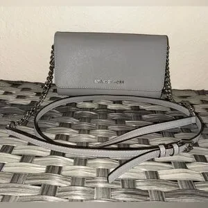 Michael Kors Wallet on Chain Crossbody — Saffiano Leather Gray WOC Bag