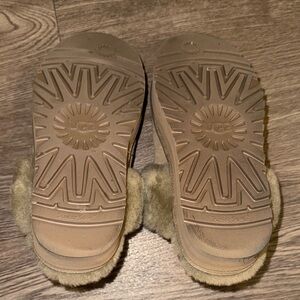 Comfortable UGG tan slippers with plush fur lining. Perfect for lounging. Gently worn, only worn 3 times