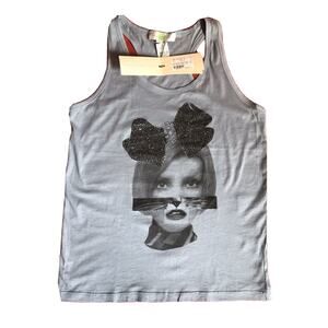 NWT STELLA McCARTNEY SLEEVELESS TANK TOP Bow Cat Lady graphic print Sz 44 Large