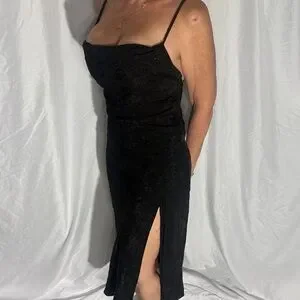 Features: Spaghetti straps, side slit, fitted waist, back zipper closure