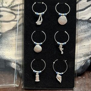 🖤Nautical Charm Wine Glass Rings Set - Silver🖤