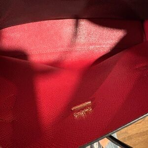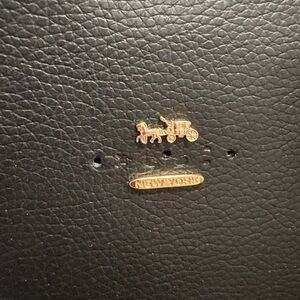 This bag is brand new and only used one time. The first time I used it the COACH emblem fell off into a dark hole because I could never find it. This is a very sought after bag and size. A new emblem could easily be added to this bag and resold for 3x. There are no callouts aside from that. Red interior with an interior zipper pocket, shoulder straps, and two D rings for a crossbody!