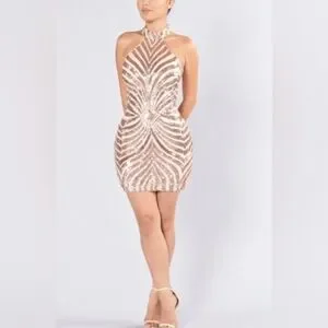 Fashion NOVA rose gold glittery Diva Vibes mini dress size Medium