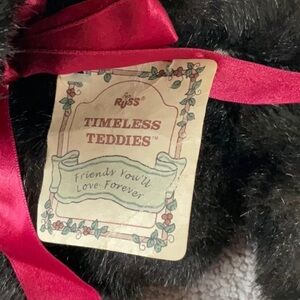 VINTAGE RUSS TIMELESS TEDDIES DARK BROWN COLLECTABLE BEAR WITH RED BOW