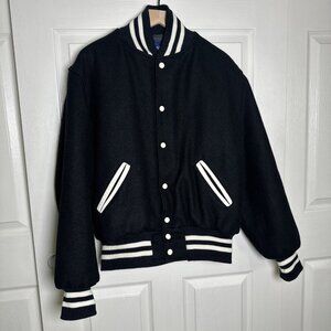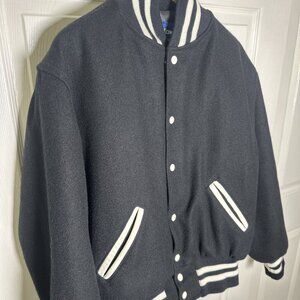 VTG Holloway Mens Large Black Varsity Jacket Original Wool Retro 90s Y2K USA