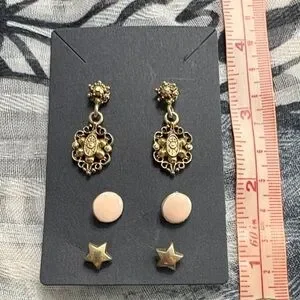 🖤Enhance your style with this elegant earring set. Featuring intricate gold designs and soft pink accents, these earrings are perfect for any occasion.🖤