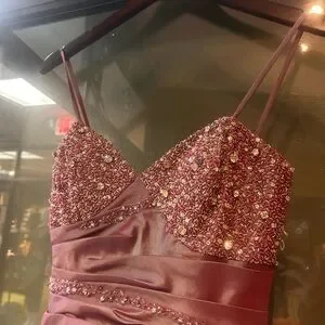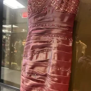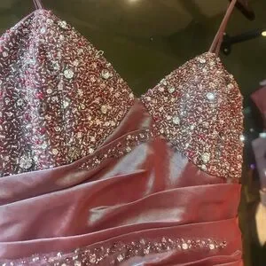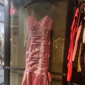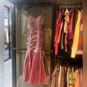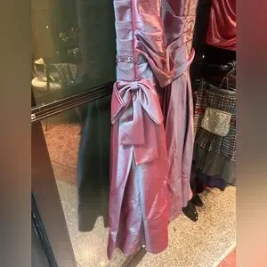 xcite y2k purple silver iridescent beaded prom dress maxi fluted bow pink