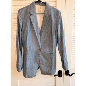 LOFT Linen Cotton One Button Chambray Blazer Women’s Size 10 Blue Work Jacket