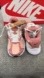 Stylish Nike sneakers in blush and white. Perfect for casual outings. Comfortable and trendy design.