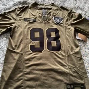 Maxx Crosby Olive 2025 Salute To Service Limited Football Stitched Jersey Size Large