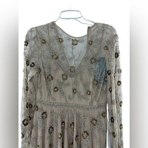 NWT Mac Duggal Beaded Illusion High Neck Long Sleeve A Line Gown 6