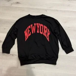SHEIN Black Oversized Sweatshirt with Red New York Print