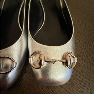 Gucci Horsebit women’s Slingback Flats in silver metallic size 39 US 9
