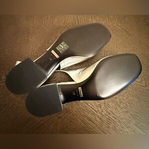 Step out in style with these elegant silver slingback flats. Perfect for any occasion, these shoes offer both comfort and sophistication. Small scuff shown on last picture.