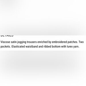Stunning red floral and leaf embroidery trousers. Features elastic waistband, front pockets and cuffed ankles. Made of viscose satin. Size L.