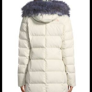 The Northface Women's Cream Puffer Coat with Faux Fur Trim
