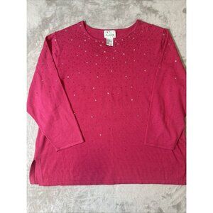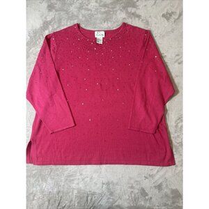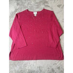 Women’s Quacker Factory Sweater Pink Beaded Plus 3X